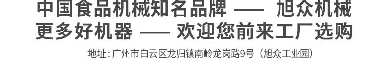 廣州旭眾食品機(jī)械有限公司是一家集科研開發(fā),生產(chǎn)設(shè)計(jì),營銷服務(wù)為一體的現(xiàn)代化生產(chǎn)企業(yè)。現(xiàn)代化生產(chǎn)車間,精湛制造技術(shù),所產(chǎn)機(jī)械歷經(jīng)市場(chǎng)重重考驗(yàn),不斷贏得海內(nèi)外客戶的贊譽(yù)。