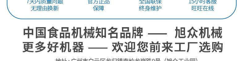 廣州旭眾食品機械有限公司是一家集科研開發,生產設計,營銷服務為一體的現代化生產企業。現代化生產車間,精湛制造技術,所產機械歷經市場重重考驗,不斷贏得海內外客戶的贊譽。