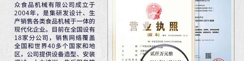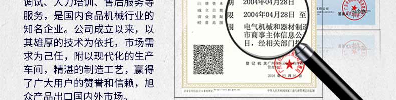 廣州旭眾食品機(jī)械有限公司是一家集科研開發(fā),生產(chǎn)設(shè)計(jì),營銷服務(wù)為一體的現(xiàn)代化生產(chǎn)企業(yè)。現(xiàn)代化生產(chǎn)車間,精湛制造技術(shù),所產(chǎn)機(jī)械歷經(jīng)市場重重考驗(yàn),不斷贏得海內(nèi)外客戶的贊譽(yù)。