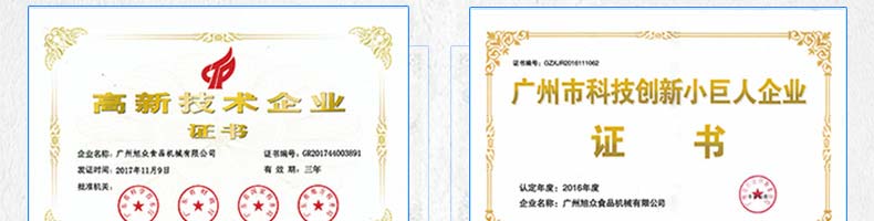 廣州旭眾食品機(jī)械有限公司是一家集科研開發(fā),生產(chǎn)設(shè)計(jì),營銷服務(wù)為一體的現(xiàn)代化生產(chǎn)企業(yè)。現(xiàn)代化生產(chǎn)車間,精湛制造技術(shù),所產(chǎn)機(jī)械歷經(jīng)市場重重考驗(yàn),不斷贏得海內(nèi)外客戶的贊譽(yù)。