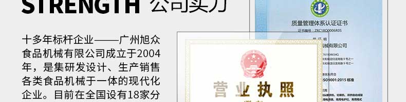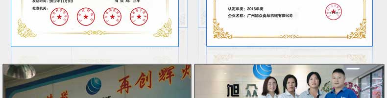 廣州旭眾食品機(jī)械有限公司是一家集科研開(kāi)發(fā),生產(chǎn)設(shè)計(jì),營(yíng)銷(xiāo)服務(wù)為一體的現(xiàn)代化生產(chǎn)企業(yè)。現(xiàn)代化生產(chǎn)車(chē)間,精湛制造技術(shù),所產(chǎn)機(jī)械歷經(jīng)市場(chǎng)重重考驗(yàn),不斷贏得海內(nèi)外客戶(hù)的贊譽(yù)。