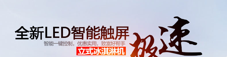 BQL-928立式冰淇淋機,1.選用國際牌壓縮機,輔以旭眾精湛工藝,大大縮短冰淇淋成型時間,高效節能;2.全新液晶智能觸控面板,簡單明了,多功能易操作;3.全新升級專業膨化泵,膨化率高,產量增加30%;4.一鍵清洗功能,省時方便;5.主要部件采用不銹鋼材質,時尚美觀,持久耐用;6.先進的機械攪拌系統,機器運行穩定可靠,低噪音,產品口感爽滑細嫩。