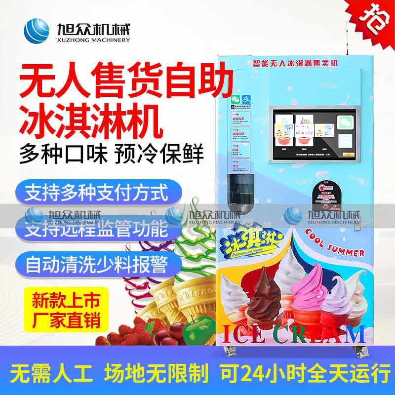 無人售貨冰淇淋機, 人工成本越來越高,無人店、無人售賣機必將是一個趨勢。簡單而又重復的勞動(售賣)必將被智能無人替代。無人售貨自助冰淇淋機支持多種支付方式,支持遠程監管功能,支持預冷保鮮,支持多種口味混合,自動清洗少料報警。無需人工、場地無限制。