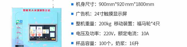 名稱無人售貨冰淇淋機 電源220V 功率1800W 產量 尺寸900*920*1800mm 重量250kg 規格 其他