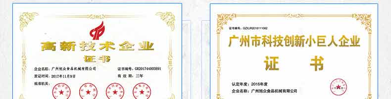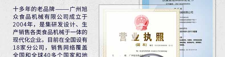 廣州旭眾食品機械有限公司是一家集科研開發,生產設計,營銷服務為一體的現代化生產企業。現代化生產車間,精湛制造技術,所產機械歷經市場重重考驗,不斷贏得海內外客戶的贊譽。