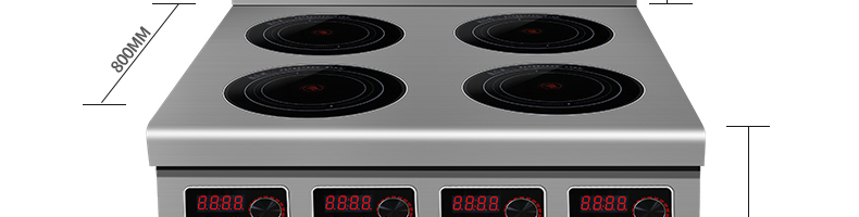 四頭柜式電磁爐,10檔調節,滿足各種烹飪。3500W火力十足,輕松選擇合適火力。同時工作互不干擾單獨磁爐控制面板,設置不同大小檔數,同時工作,互不干擾。