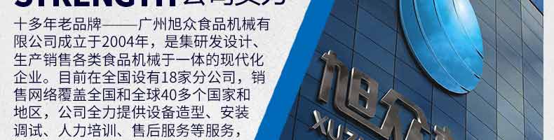 廣州旭眾食品機(jī)械有限公司是一家集科研開(kāi)發(fā),生產(chǎn)設(shè)計(jì),營(yíng)銷服務(wù)為一體的現(xiàn)代化生產(chǎn)企業(yè)。現(xiàn)代化生產(chǎn)車間,精湛制造技術(shù),所產(chǎn)機(jī)械歷經(jīng)市場(chǎng)重重考驗(yàn),不斷贏得海內(nèi)外客戶的贊譽(yù)。
