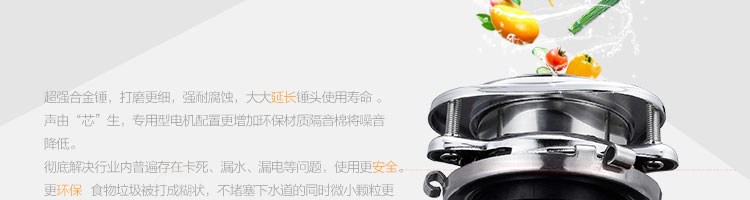 ACLQ56-廚房垃圾處理器,該機器是靠內(nèi)部結(jié)構(gòu)、零件組合達(dá)到處理垃圾的效果,通過碾、壓、擠、磨等系統(tǒng)的處理,在十幾秒內(nèi)安全將食物垃圾處理成小于3毫米的顆粒,隨著水流排入下水道,使用十分安全。