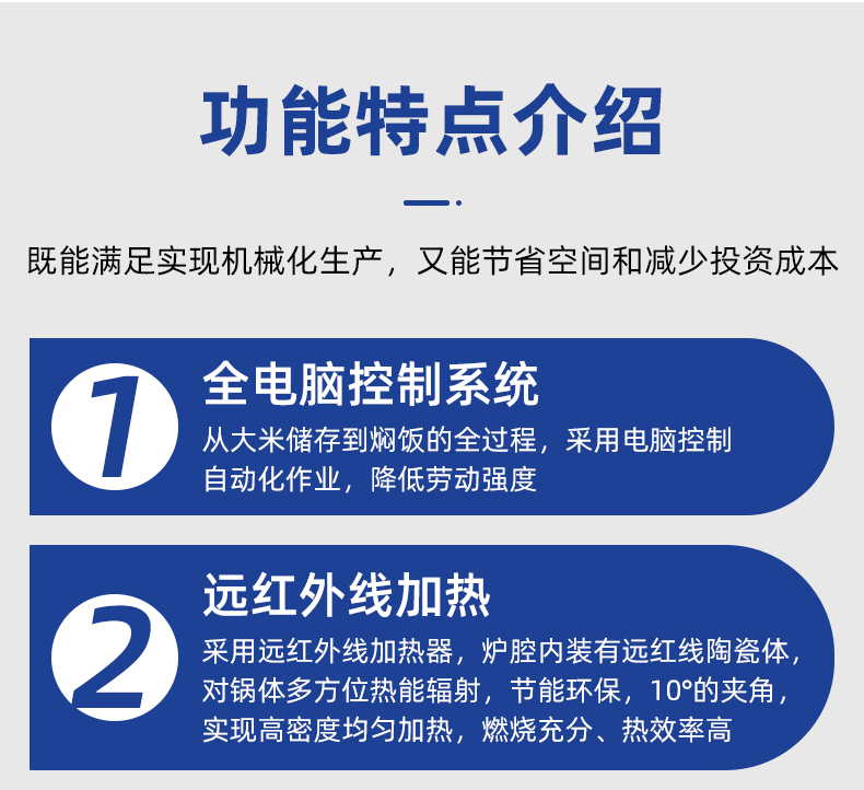 機械手全自動米飯生產(chǎn)線,實力大咖 商用好幫手,提供培訓、指導和工藝傳授,品牌服務有保障。遠紅外加熱、智能控制、立體燜飯、不粘鍋、熱效率高、不銹鋼結構、雙層保溫、節(jié)能環(huán)保。