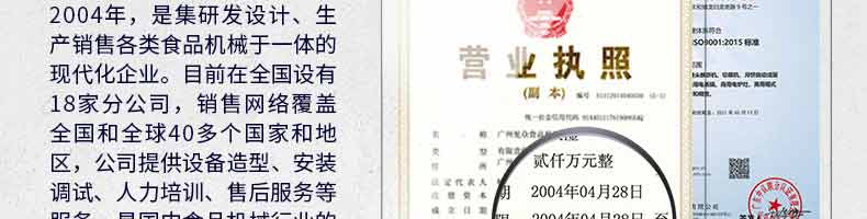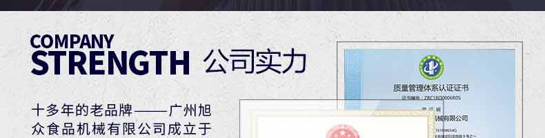 廣州旭眾食品機(jī)械有限公司是一家集科研開發(fā),生產(chǎn)設(shè)計(jì),營(yíng)銷服務(wù)為一體的現(xiàn)代化生產(chǎn)企業(yè)。現(xiàn)代化生產(chǎn)車間,精湛制造技術(shù),所產(chǎn)機(jī)械歷經(jīng)市場(chǎng)重重考驗(yàn),不斷贏得海內(nèi)外客戶的贊譽(yù)。