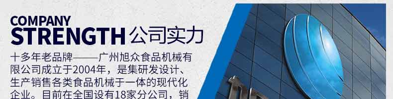 廣州旭眾食品機(jī)械有限公司是一家集科研開(kāi)發(fā),生產(chǎn)設(shè)計(jì),營(yíng)銷(xiāo)服務(wù)為一體的現(xiàn)代化生產(chǎn)企業(yè)。現(xiàn)代化生產(chǎn)車(chē)間,精湛制造技術(shù),所產(chǎn)機(jī)械歷經(jīng)市場(chǎng)重重考驗(yàn),不斷贏得海內(nèi)外客戶的贊譽(yù)。