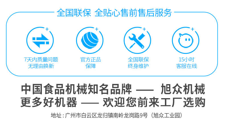 廣州旭眾食品機械有限公司是一家集科研開發,生產設計,營銷服務為一體的現代化生產企業。現代化生產車間,精湛制造技術,所產機械歷經市場重重考驗,不斷贏得海內外客戶的贊譽。