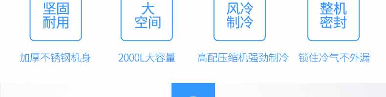 XZ-速凍柜,實(shí)力派,不妥協(xié)。4大強(qiáng)勢(shì)來襲,源自生活所需。堅(jiān)固耐用、大空間、風(fēng)冷制冷、整機(jī)密封、加厚不銹鋼機(jī)身,2000L大容量,高配壓縮機(jī)強(qiáng)勁制,令鎖住冷氣不外漏。